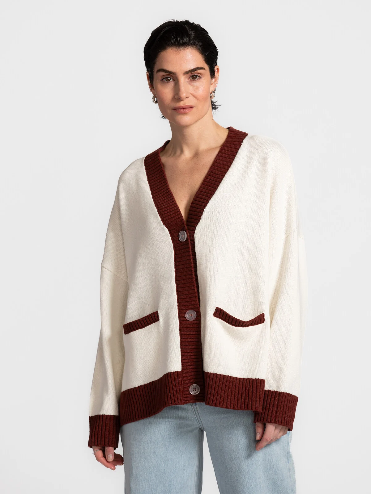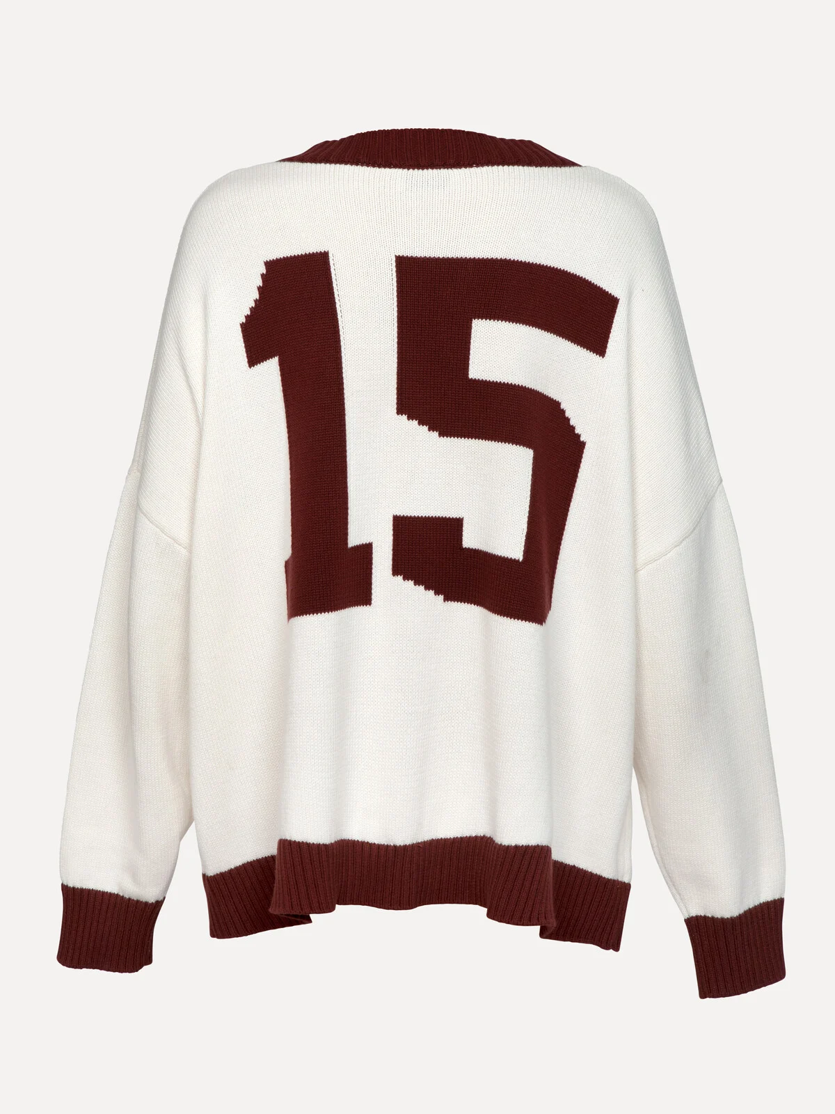 Een moderne cardigan met een knipoog naar vintage sportswear. De Maia combineert comfort en stijl in een opvallend ontwerp. Het nummerdetail en de contrasterende afwerking geven dit item een speelse twist die elke outfit versterkt.