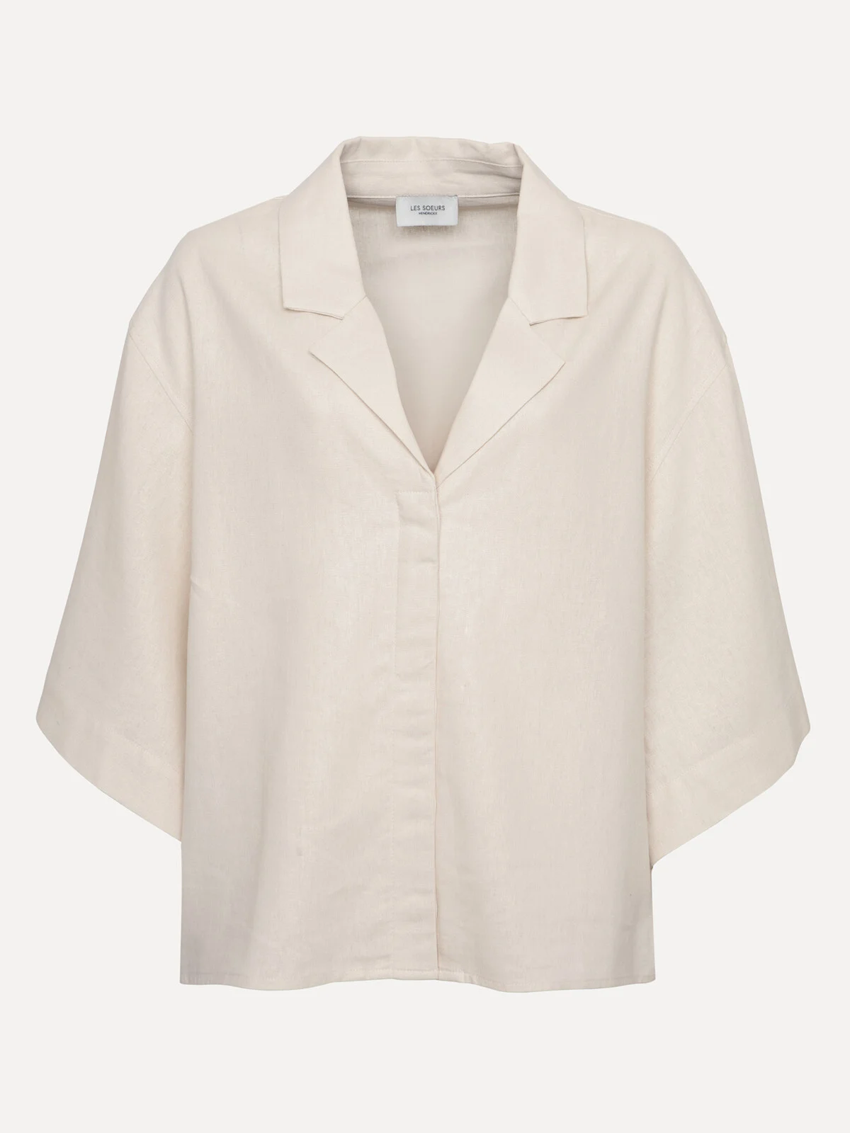 Effortless ecru. Dit hemd in luchtige linnenmix met 3/4 mouw straalt natuurlijke elegantie uit. De losse fit en neutrale kleur maken het perfect voor zonnige werkdagen, ontspannen weekends of als lichte laag over een zomerse outfit.