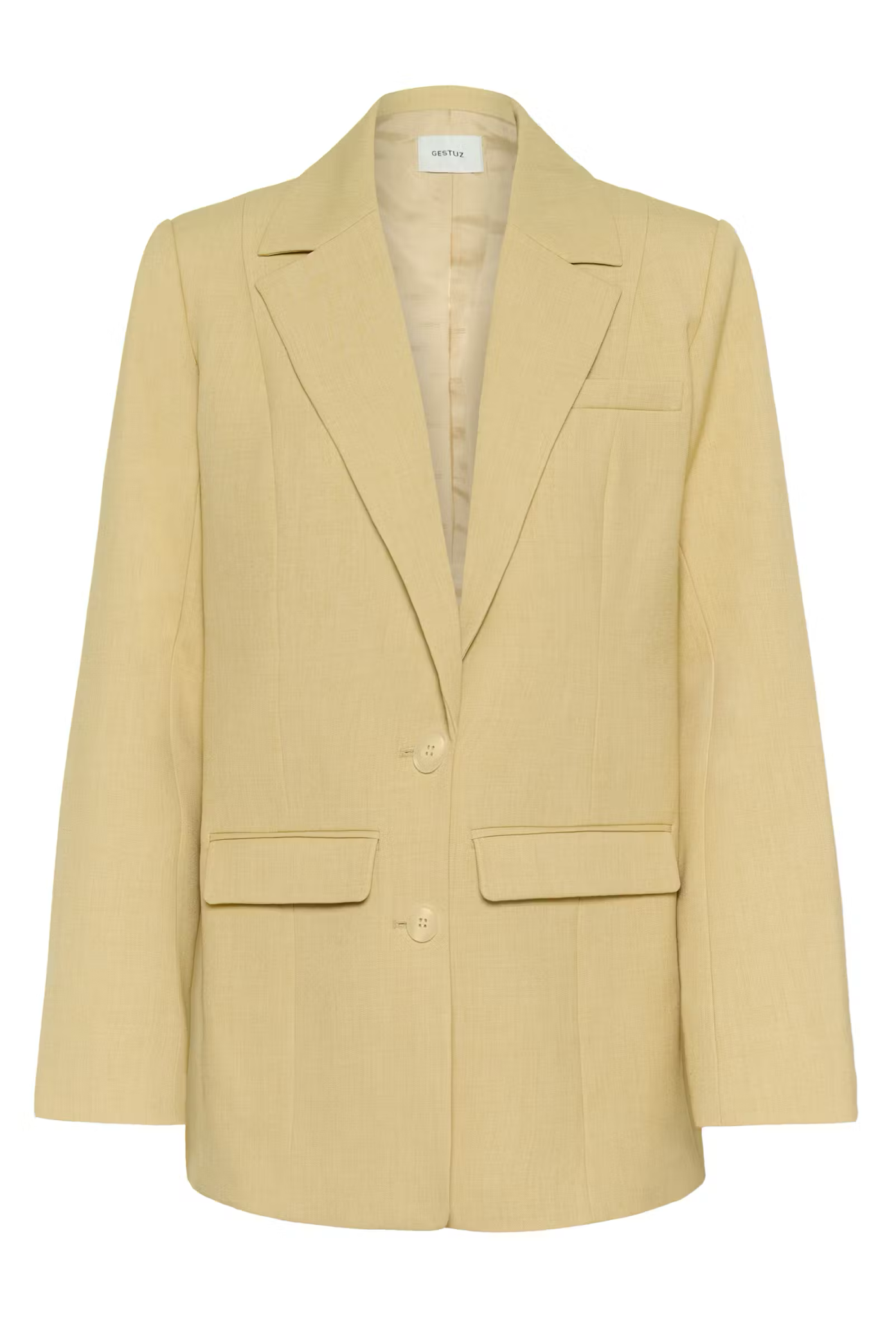 Blazer with structured silhouette, two-button front, sharp lapels and flap pockets. Features straight fit, tailored seams and subtle welt chest pocket. Effortlessly sharp style for statement looks.