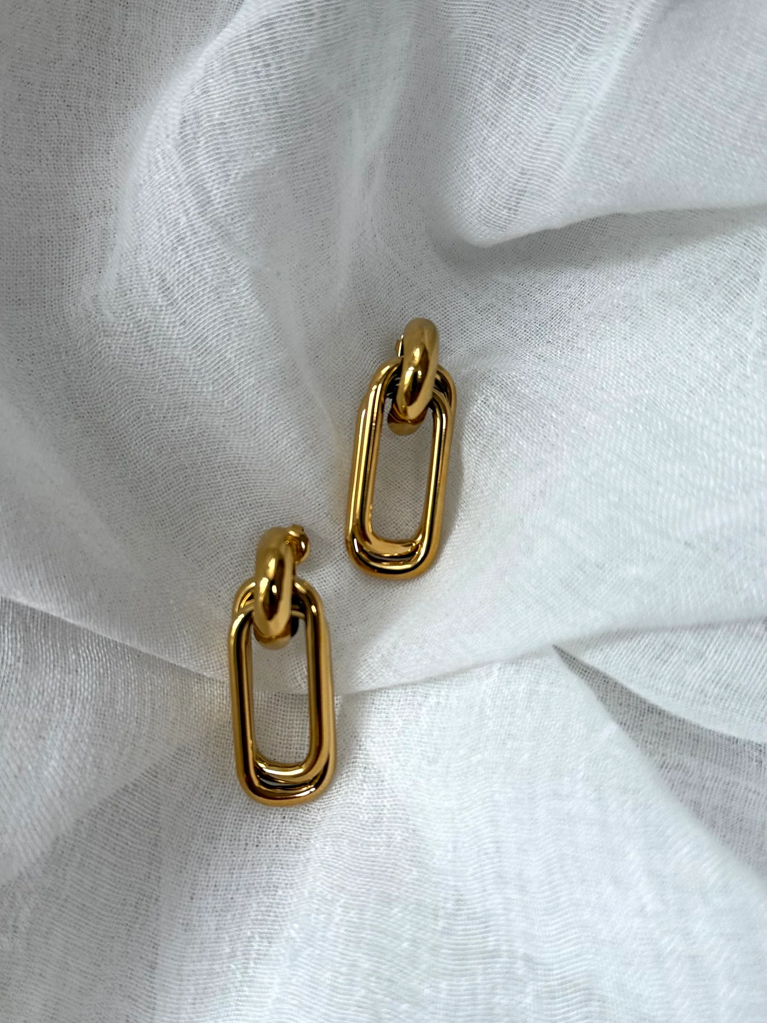 Het design met dubbele ovale schakels zorgt voor een krachtige, maar elegante uitstraling. Deze oorbellen kunnen overdag als s'avonds perfect tot hun recht komen.