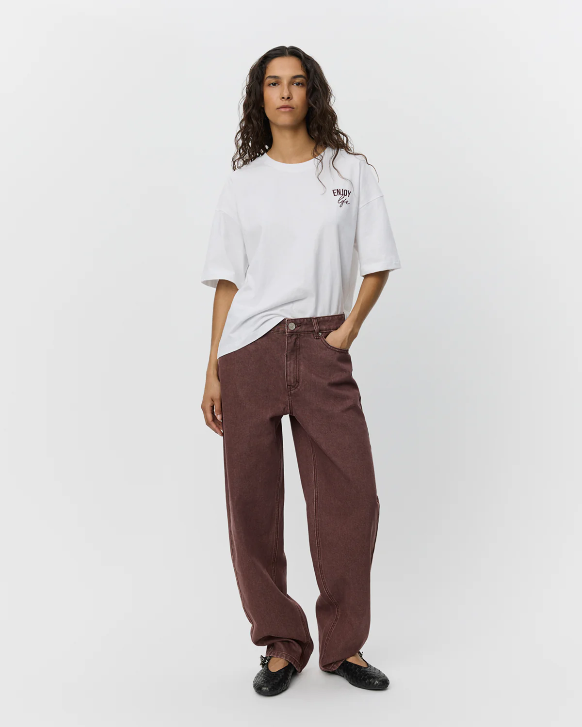 • Front: Embroidery with the text "enjoy life"